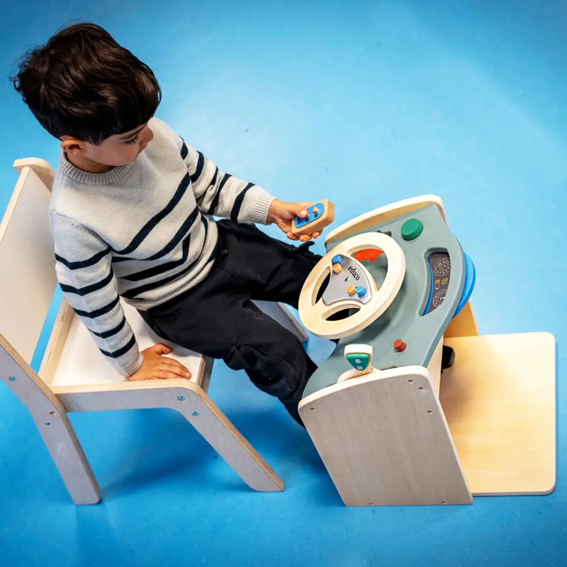 Jeśli Twój maluch uwielbia towarzyszyć Ci w podróżach samochodem, ta zabawka będzie strzałem w dziesiątkę. Drewniana kierownica od Educo to nie tylko ster, ale całe centrum dowodzenia z ruchomymi elementami. Pomaga dziecku poczuć sprawczość i ćwiczyć samoregulację podczas dynamicznej zabawy.